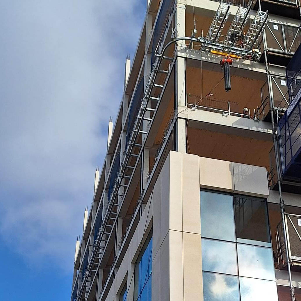 The monorail can lift weights up to 2000KG and can be fitted with a cradle so that once the cladding has been installed you can work on the external finishing easily.