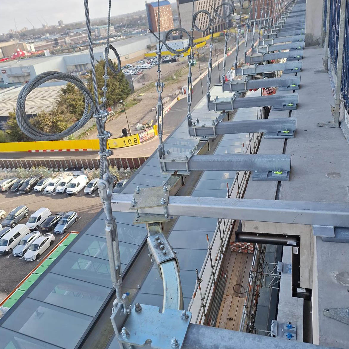 The primary reason for using our monorail system is that it saves you money, by speeding up Facade installation, Maintenance and reducing your demand on an expensive crane.