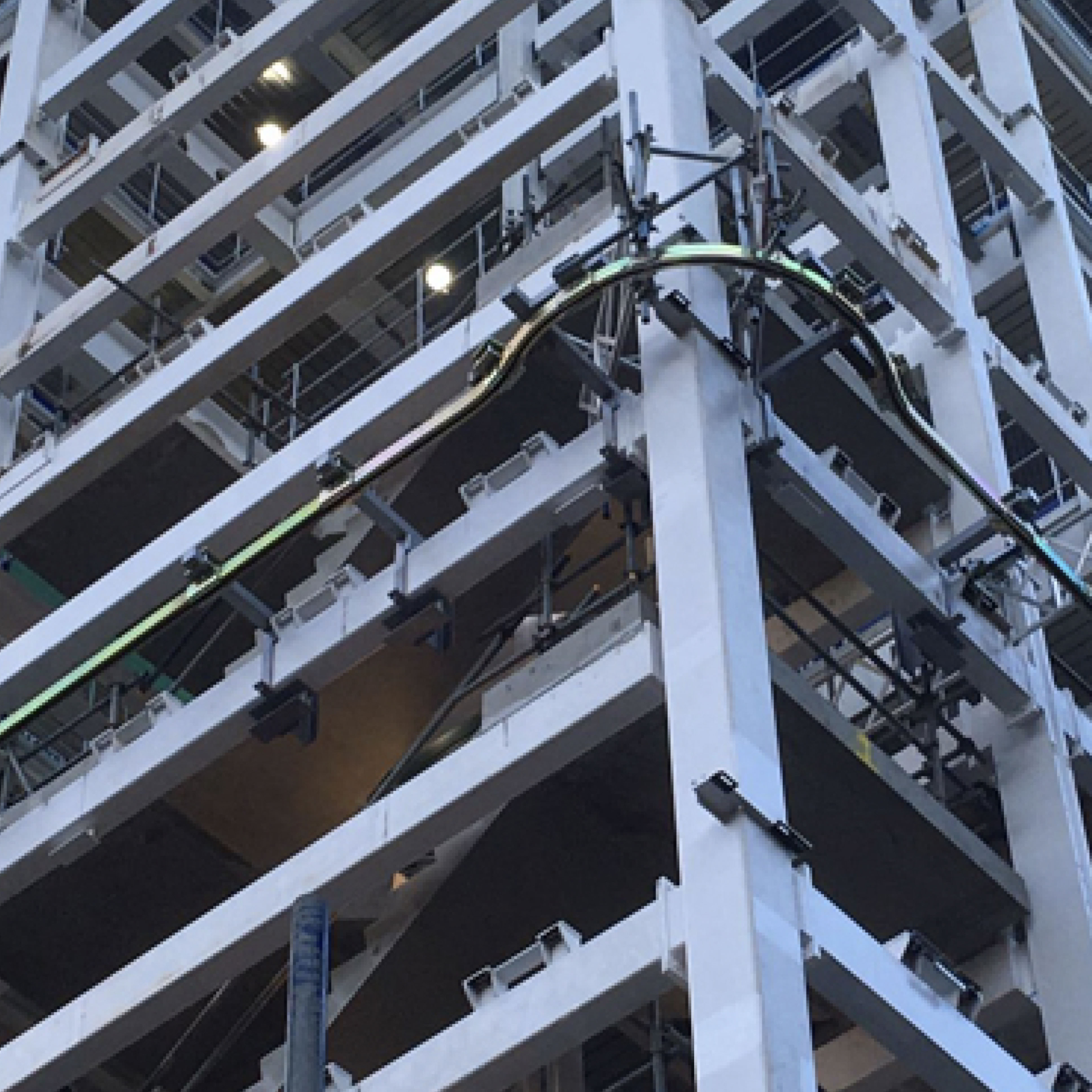 Our monorail system can go around corners and complex forms which means it gives you access to the entire facade installation surface.